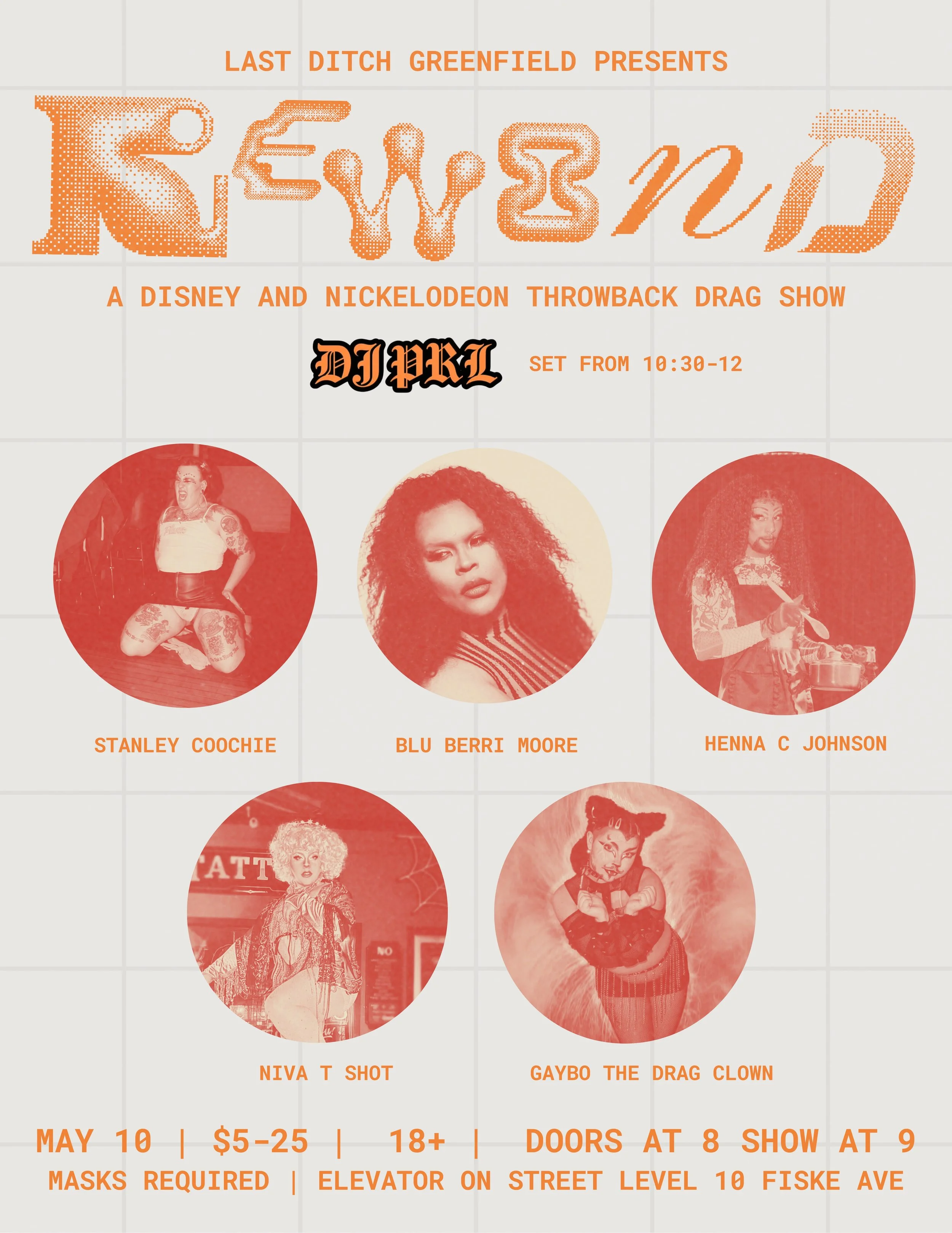 90s kids— this one’s for you! Last Ditch presents: Rewind, a Disney & Nickelodeon Throwback Drag Show. Local drag heart throbs Stanley Coochie, Blue Berri Moore, Henna C Johnson, Niva T Shot, and Gaybo the Drag Clown are bringing a night of nerdy nostalgia you won’t want to miss. And the iconic DJ PRL is spinning after the show! Of course, don’t forget to bring singles to tip these fierce performers.